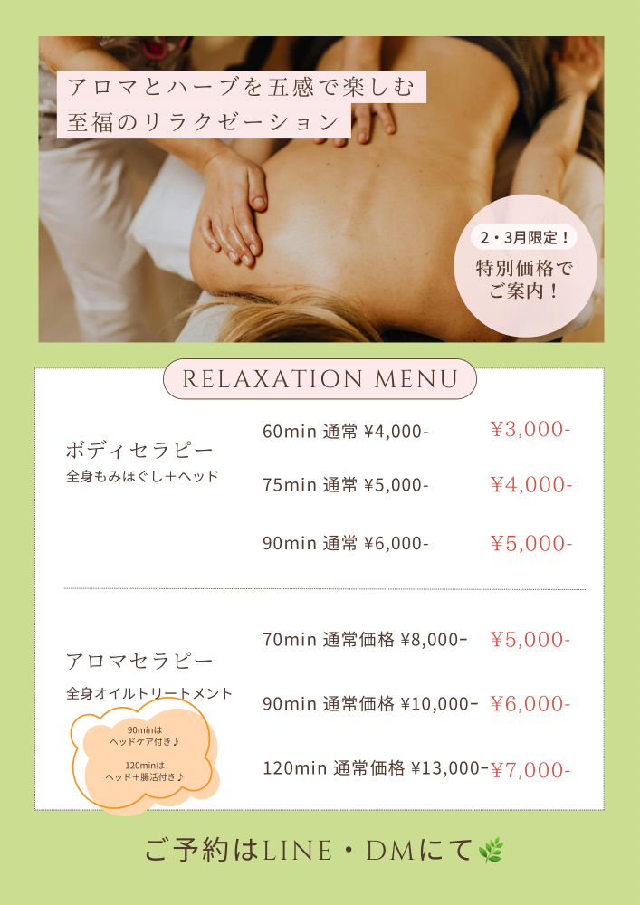 ※リラクゼーションメニューのお客様は